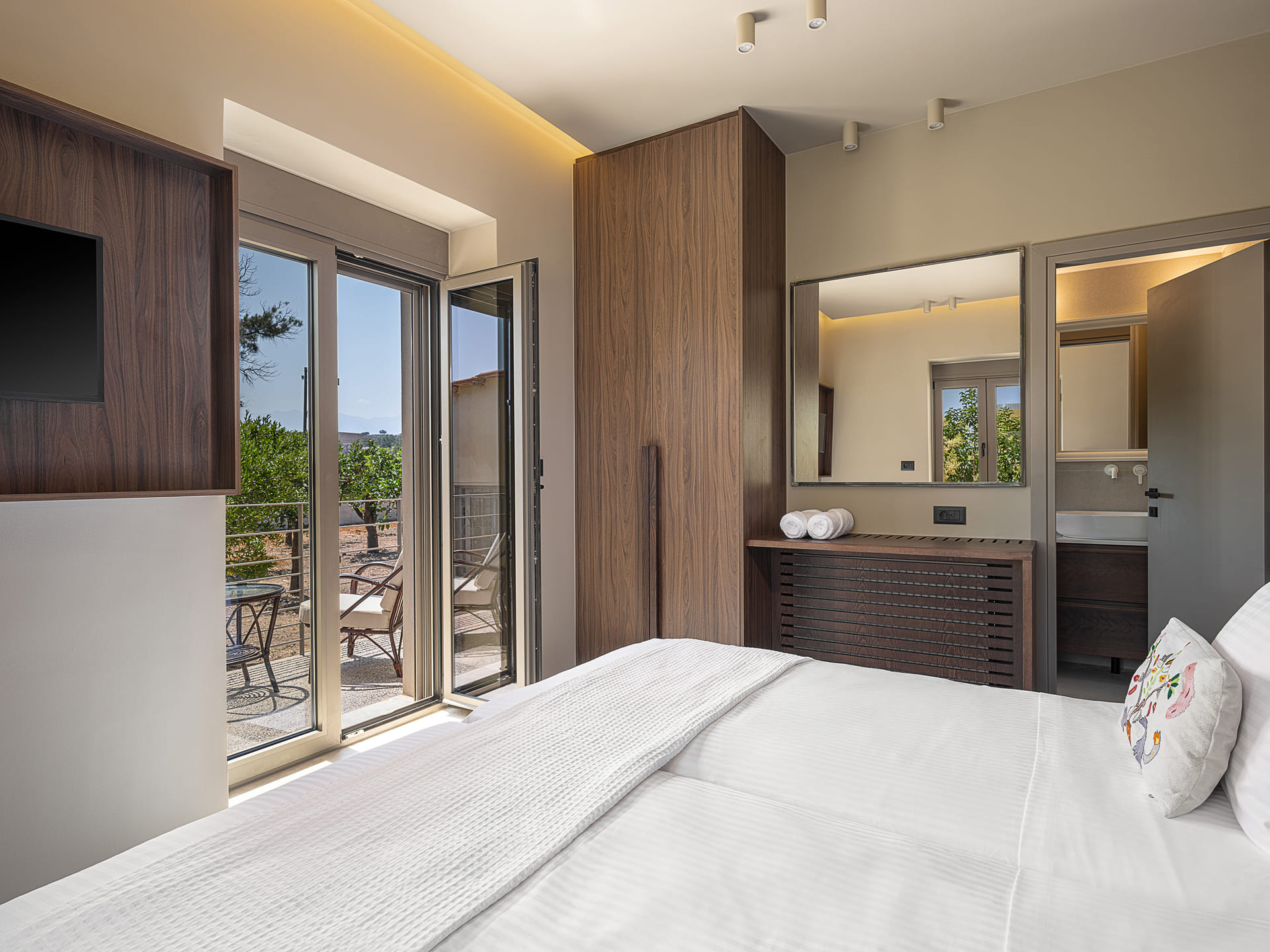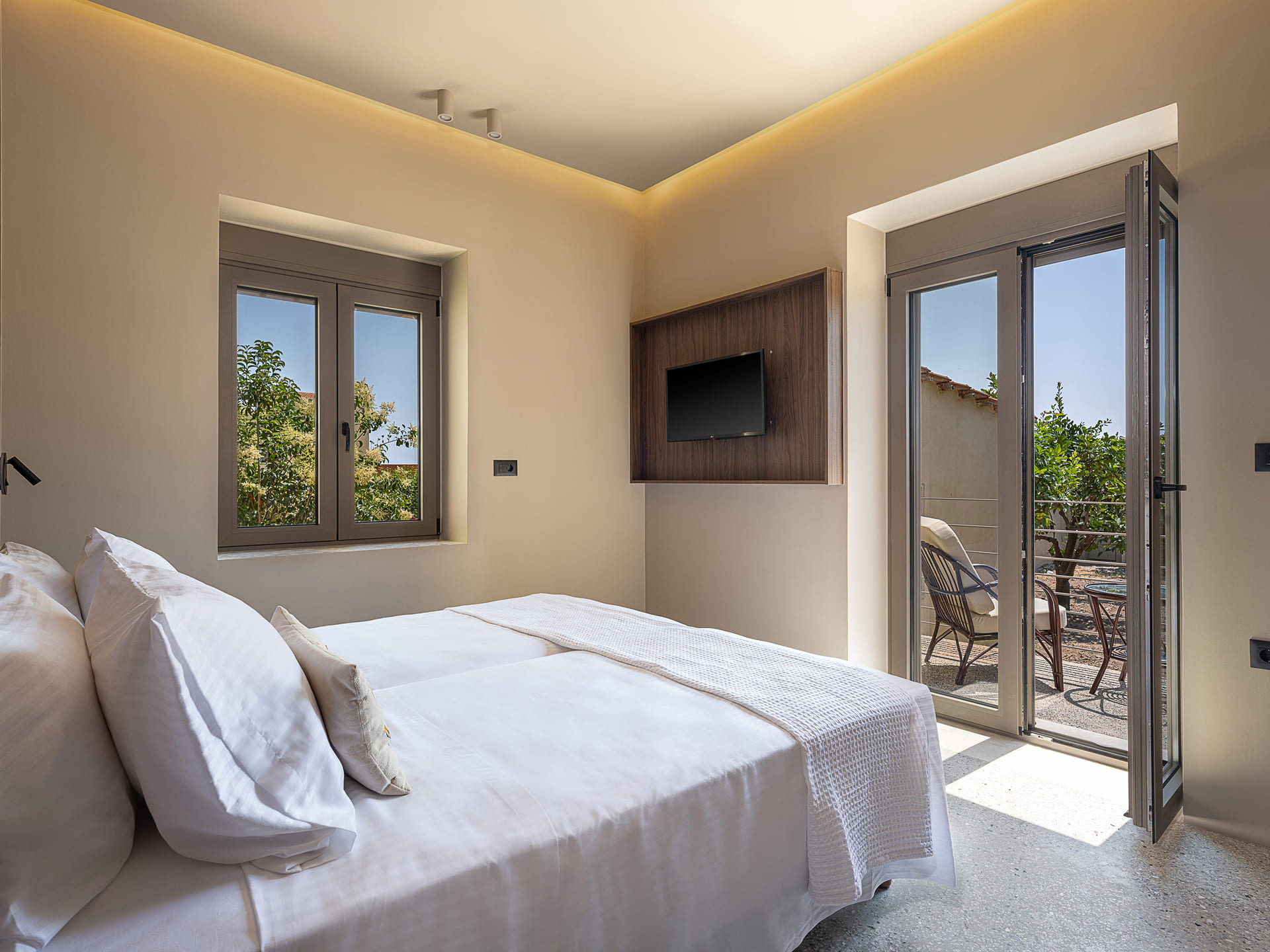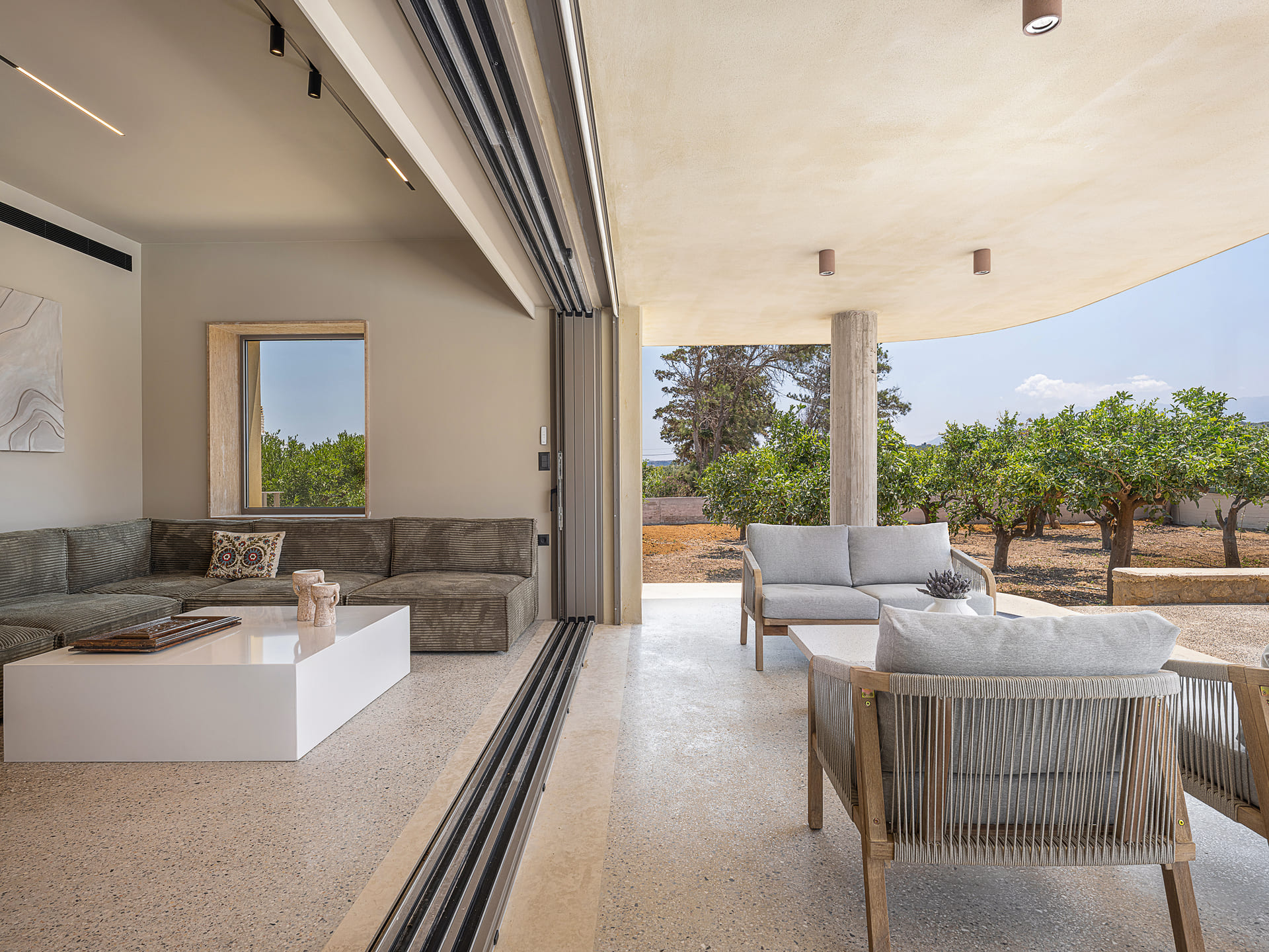 Today, this treasured home has been carefully restored with the intention of sharing that same feeling. Every corner of Villa Portokalea reflects a deep love for family, heritage, and the timeless spirit of Cretan hospitality. The renovation honors the villa’s past while offering all the comforts of modern living, creating an ideal setting for new memories — whether you’re traveling with loved ones, your children, or lifelong friends. The villa’s name, Portokalea, derived from the Greek word portokalia, meaning ‘orange tree’, aims to highlight its deep connection to the land, as it is surrounded by its own fragrant orange grove.
